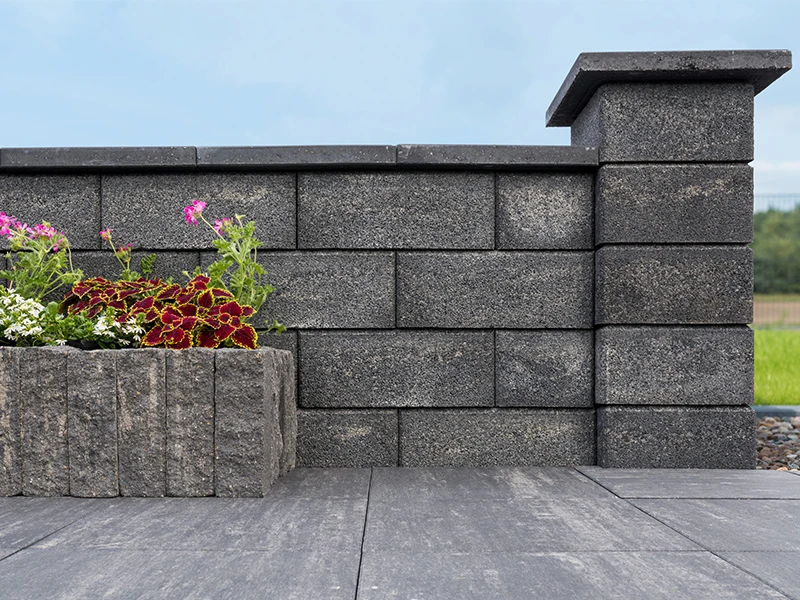 Klassische Mauerform mit betonten Pfeilern: die COLUNA Gartenmauer ist schnell und einfach aufgebaut.