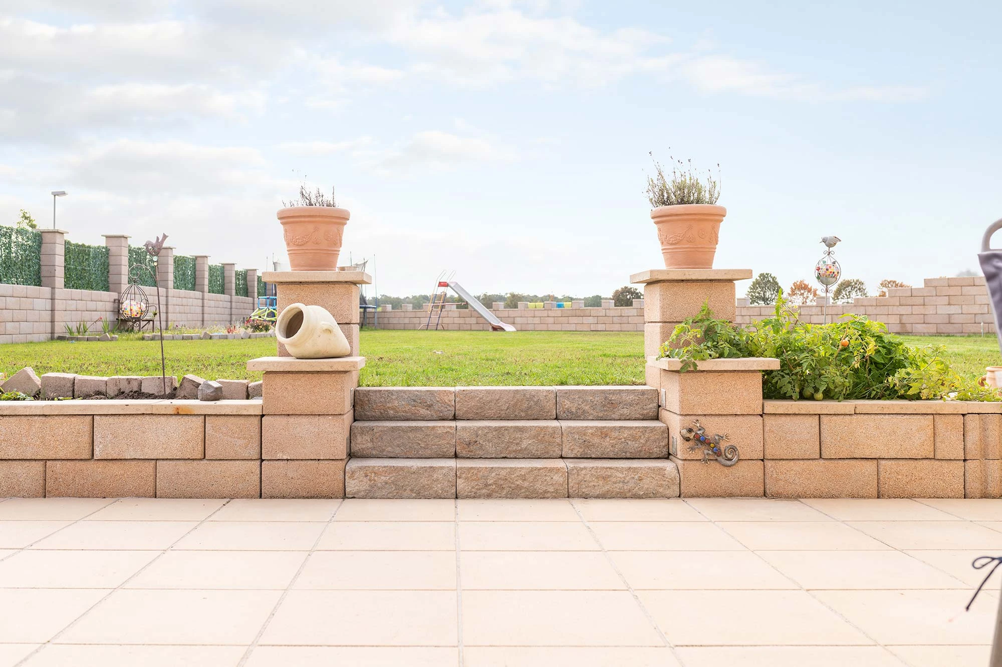 Klassische Mauerform mit betonten Pfeilern: die COLUNA Gartenmauer ist schnell und einfach aufgebaut.