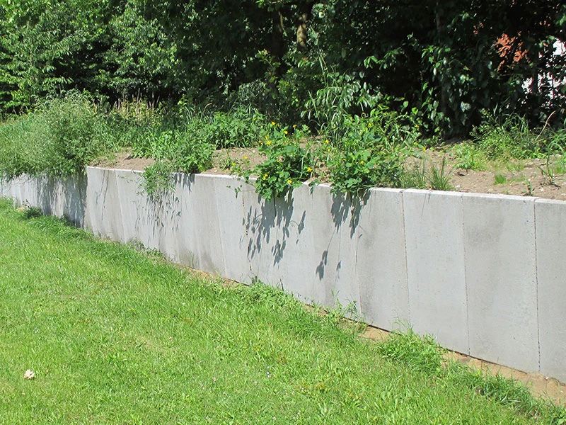 Die L-Steine ohne Bewehrung sind nicht nur als elegante Begrenzung einsetzbar, sondern eignen sich auch für die Befestigung von Böschungen mit Erdhinterfüllung. Dabei ist zu beachten, dass sie ohne Verkehrslast verwendet werden und bei der Installation kein mechanischer Verdichtungsdruck entsteht.