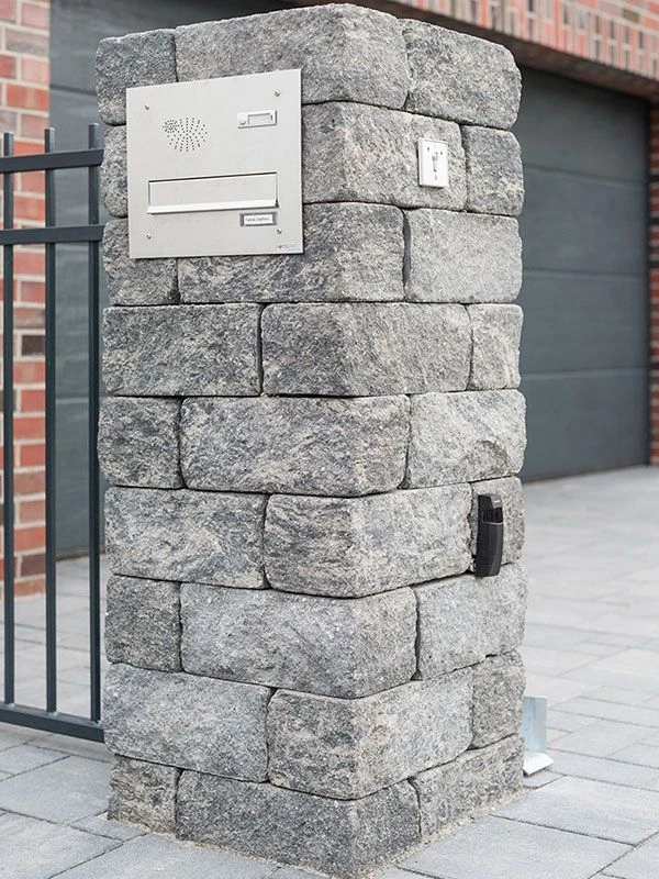 Durch seine gespaltene Oberfläche wirkt der Siola Mini besonders natürlich und fügt sich harmonisch in jede Gartenlandschaft ein. Als Trockenmauerstein kann er ohne aufwendiges Verkleben verarbeitet werden, was eine schnelle und flexible Montage ermöglicht.
