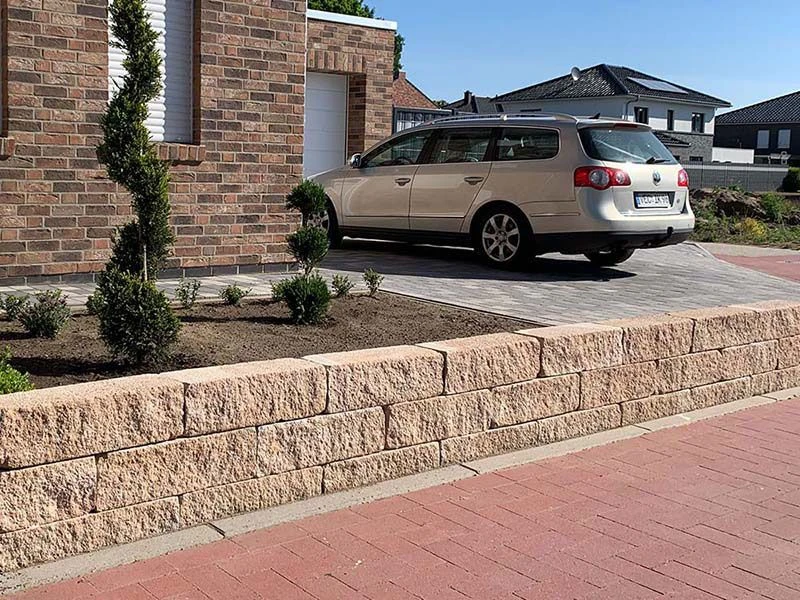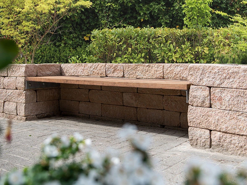 Durch seine gespaltene Oberfläche wirkt der Siola Mini besonders natürlich und fügt sich harmonisch in jede Gartenlandschaft ein. Als Trockenmauerstein kann er ohne aufwendiges Verkleben verarbeitet werden, was eine schnelle und flexible Montage ermöglicht.