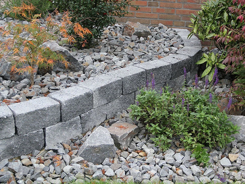Durch seine gespaltene Oberfläche wirkt der Siola Mini besonders natürlich und fügt sich harmonisch in jede Gartenlandschaft ein. Als Trockenmauerstein kann er ohne aufwendiges Verkleben verarbeitet werden, was eine schnelle und flexible Montage ermöglicht.