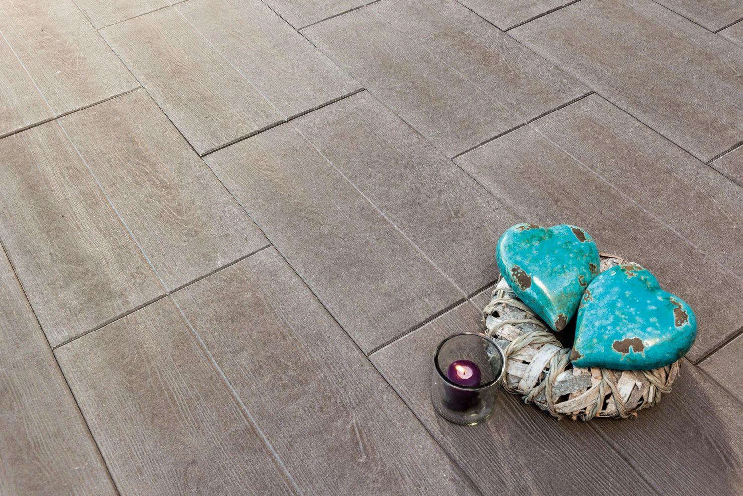 Die eingeprägte Holzmaserung sorgt für eine realistische Struktur und ein natürliches Erscheinungsbild. Eine angedeutete mittige Fuge verstärkt den Dielencharakter und schafft eine harmonische, hochwertige Flächenwirkung.