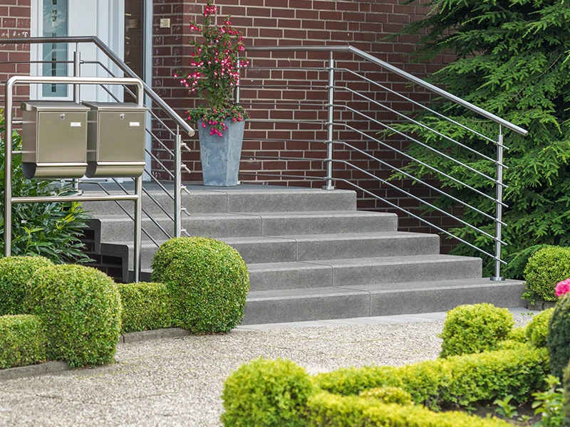 Mit den DIEPHAUS Winkelstufen lassen sich schnell und einfach Treppen für Hauseingänge, Terrassen und Wege gestalten – passend zu den Terrassenplatten, Pflastersteinen und Mauersteinen aus dem DIEPHAUS Gartenbauprogramm. Dank der überragenden Qualität unterliegen die Winkelstufen weder Abrieb noch Witterungseinflüssen. Weitere Gestaltungsmöglichkeiten eröffnen Tritt- und Setzstufen, Podestplatten und unsere zahlreichen Sonderformen.