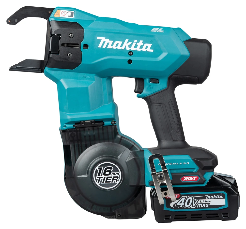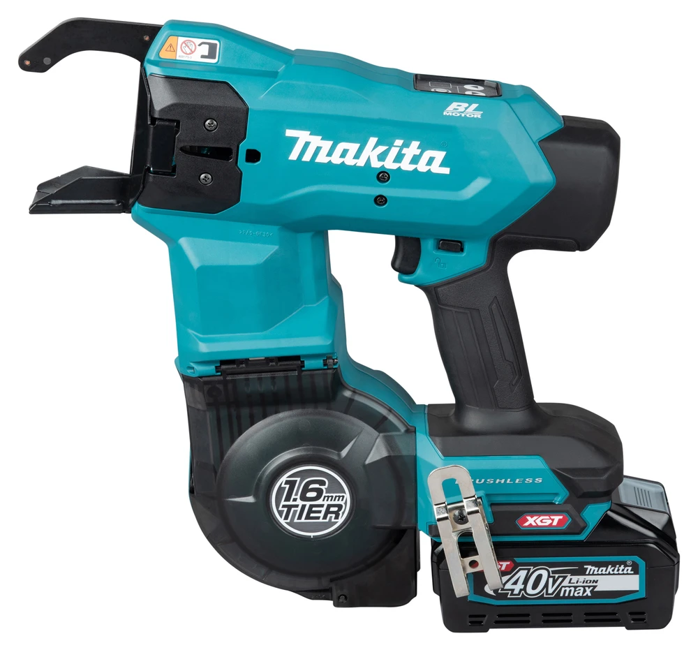 Akku-Bewehrungsverbinder mit 40V max. Antrieb. Besonders feste Bindungen bei geringem Drahtverbrauch. Die Bindekraft lässt sich materialgerecht einstellen. Es werden Drahtdurchmesser von 1,6 mm verarbeitet, die maximale Bindekapazität beträgt 16x16 mm. Das Gewicht des Akku-Bewehrungsverbinders liegt bei 4,5 kg bei Verwendung des Akku BL4080F.