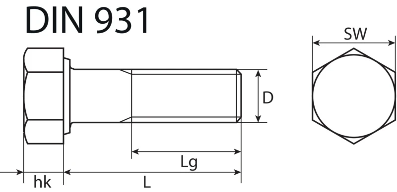 Gewindeschrauben 8.8 Sechskantkopf, verzinkt, DIN 931